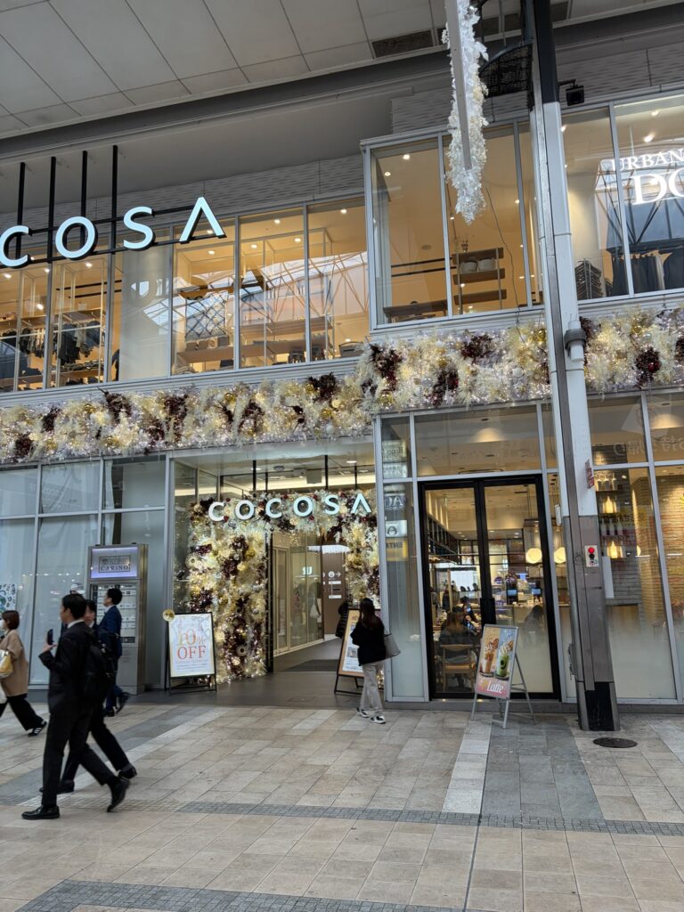 途中にあるCOCOSAもクリスマス色ですね。途中でここで献血を行いました。