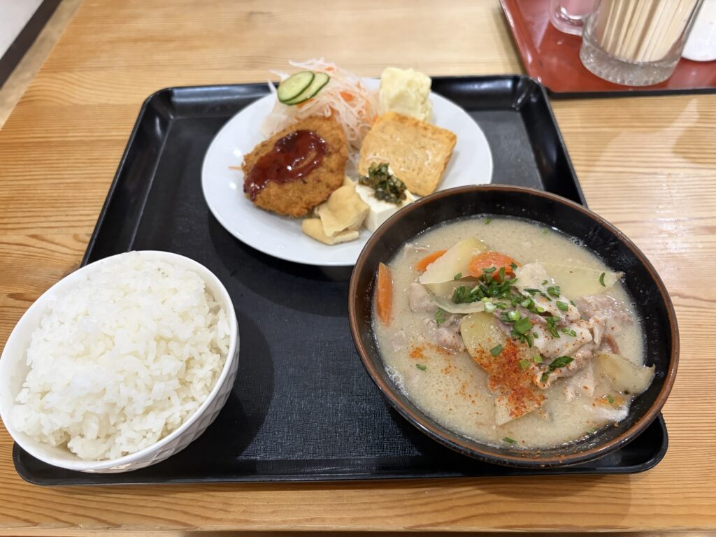 • 豚汁定食:具だくさんの豚汁にご飯・副菜付き。定番人気。